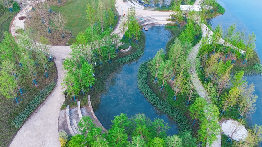 在此基础上,11.6公顷的水乡公园(一期)也正式亮相。公园内,滨水绿地自然清新,慢跑道、骑行道连续成网,水韵湿地、绿云浮岛等景观连片呈现。一池碧水,生态共融,这里不仅是科创小镇的生态绿肺,作为示范区科创人才交流共享的“自然会客厅”,更实现了江南水乡风貌与科创城市功能的统一,描绘出一幅生态绿色与科技创新和谐发展的新图景,为示范区高质量发展注入绿色动能。